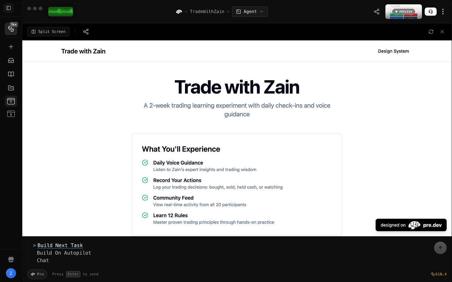 I built this on Pre.Dev. I learn about how expensive tokens can be. This platforms helps plan and architect the whole product.